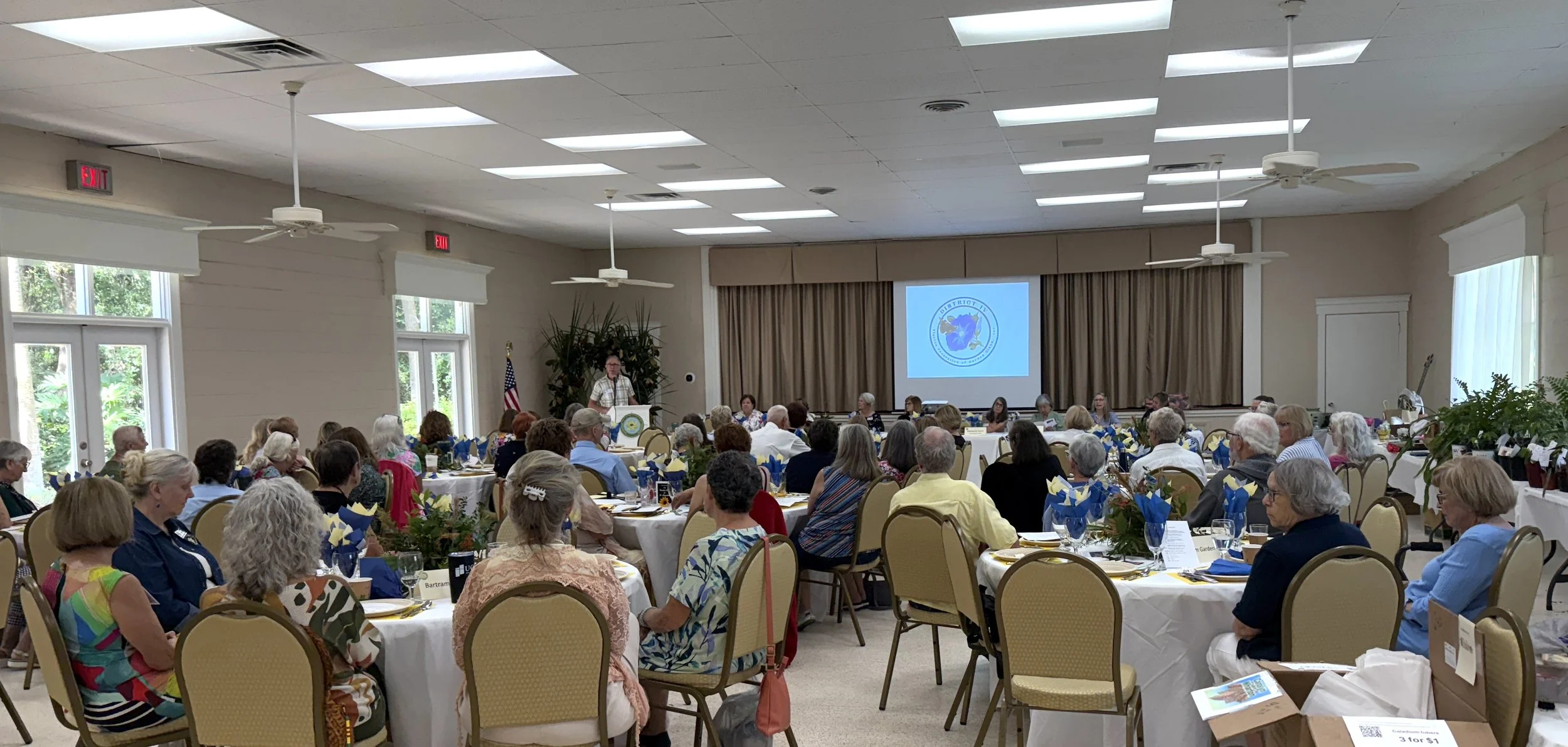 We meet the second Thursday of the Month – September thru May (with the exception of September 2025 when the meeting will be Tuesday, September 9th) at Story & Song Center for Arts & Culture, 1430 Park Ave., Fernandina Beach, FL 32034 at 10:30am with social time starting at 10am.