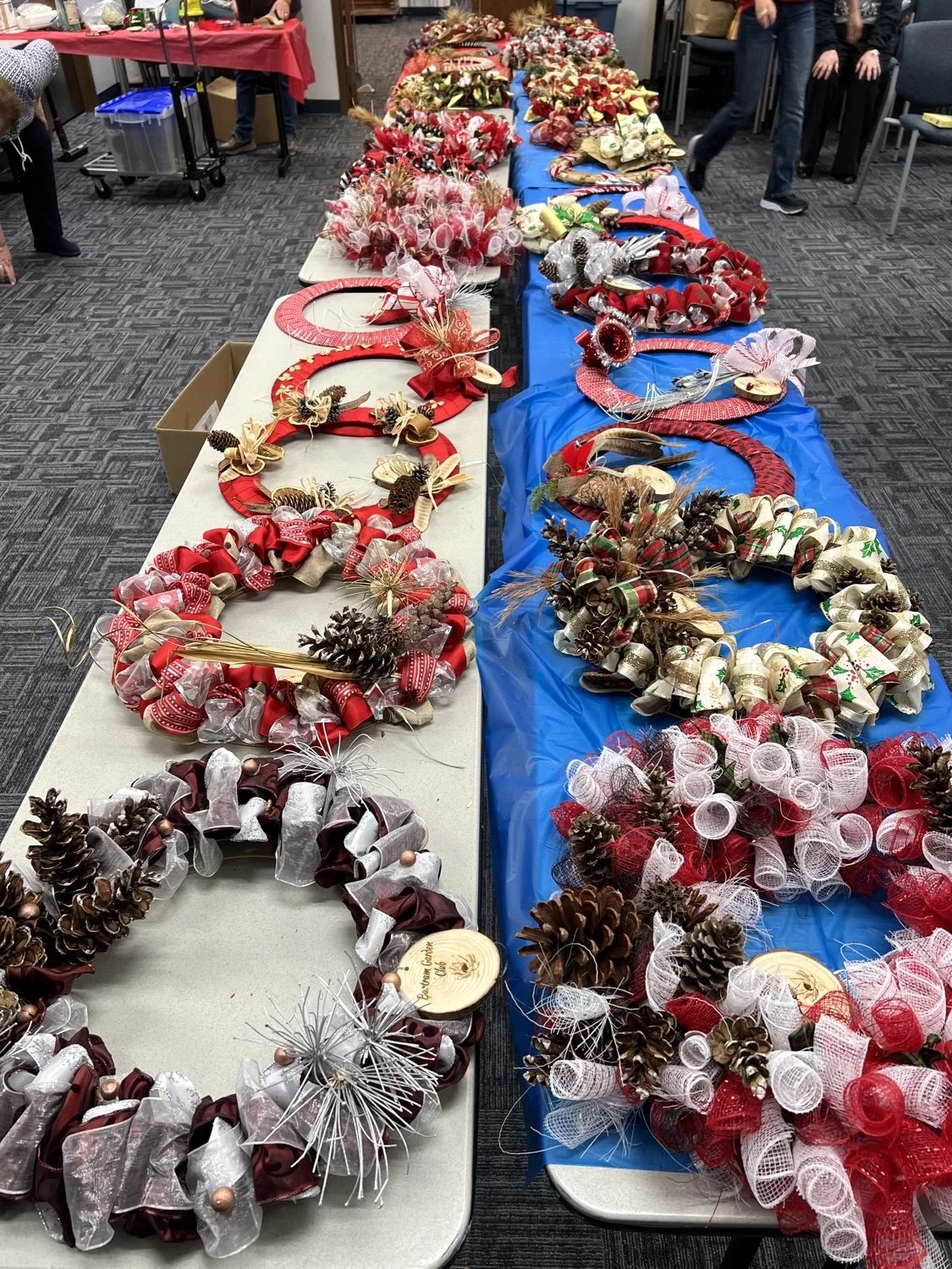 On December 5, 2024 ten members created 30 holiday wreaths to adorn offices of COFB and Nassau County government agencies, including First Responder stations.