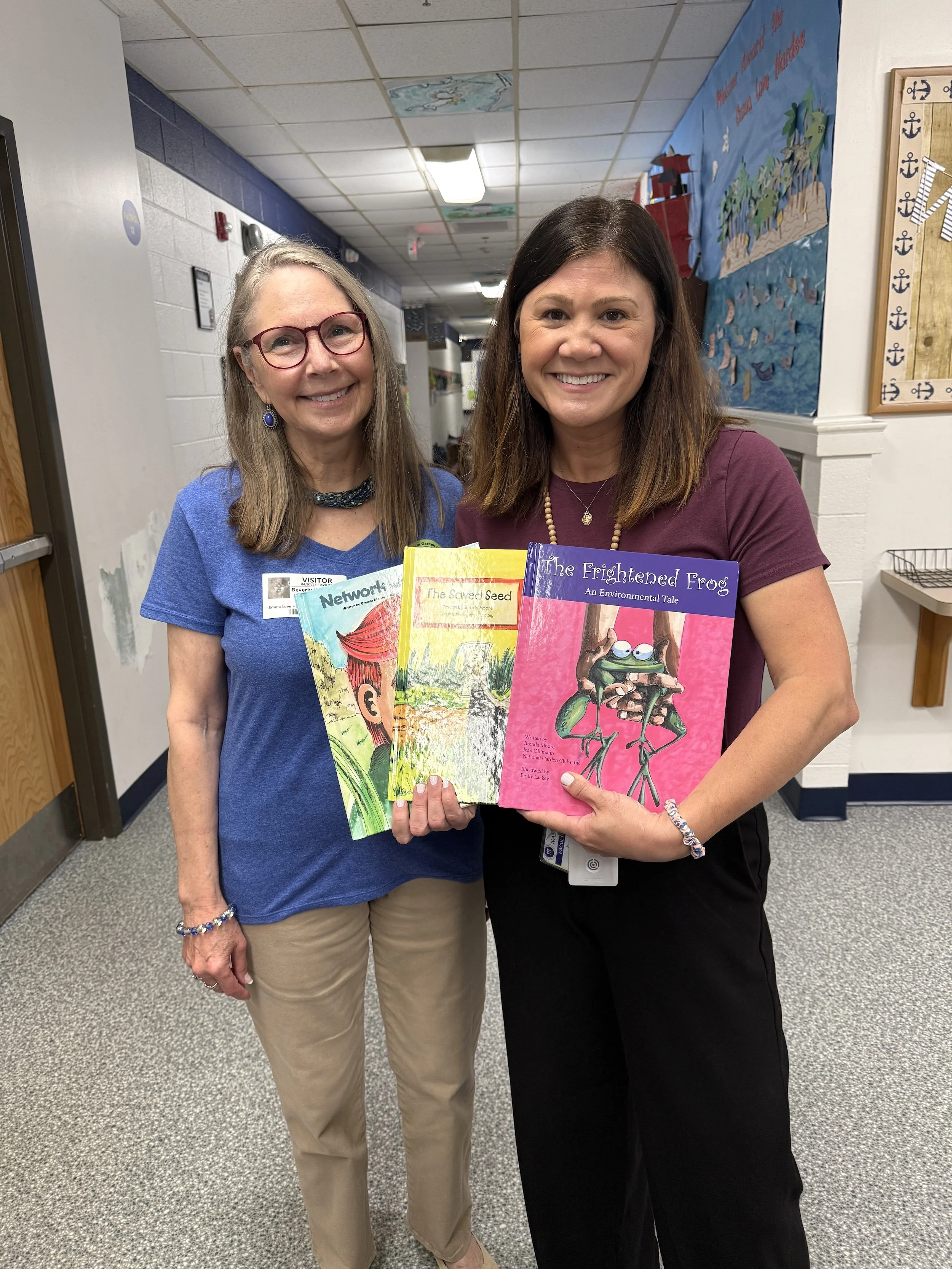 Natalie Loucks, 4th grade teacher at Emma Love Elementary in Fernandina Beach, accepting nature books published by National Garden Clubs and donated by The Bartram Garden Club. Natalie is the daughter of club member Claudia Burningham. These books encourage children to get outside and connect with nature, furthering our club objective to “leave no child inside.”