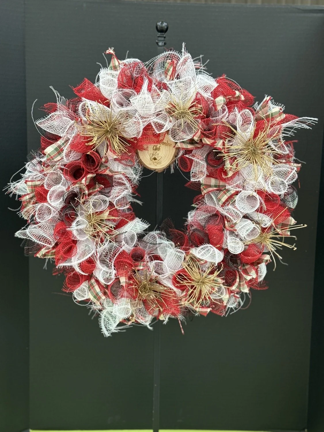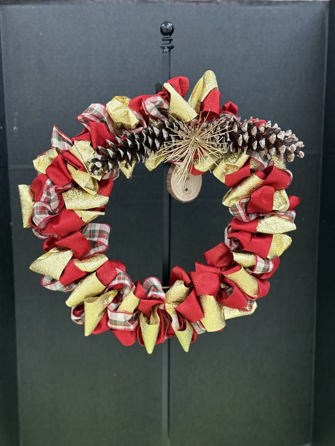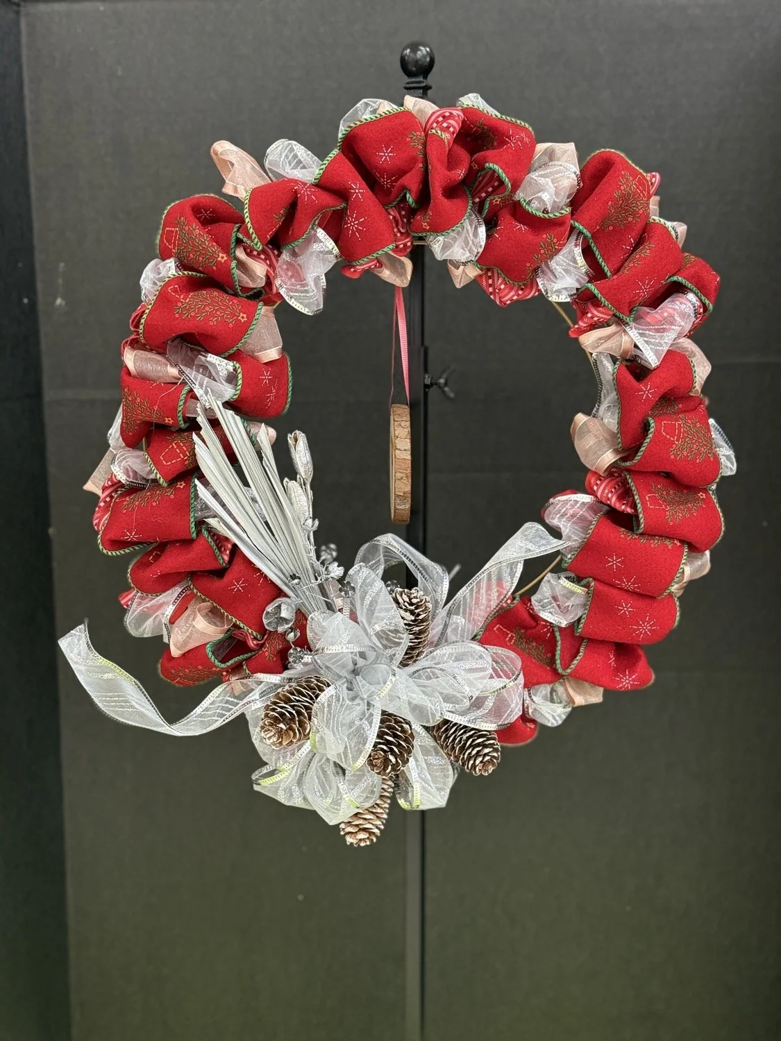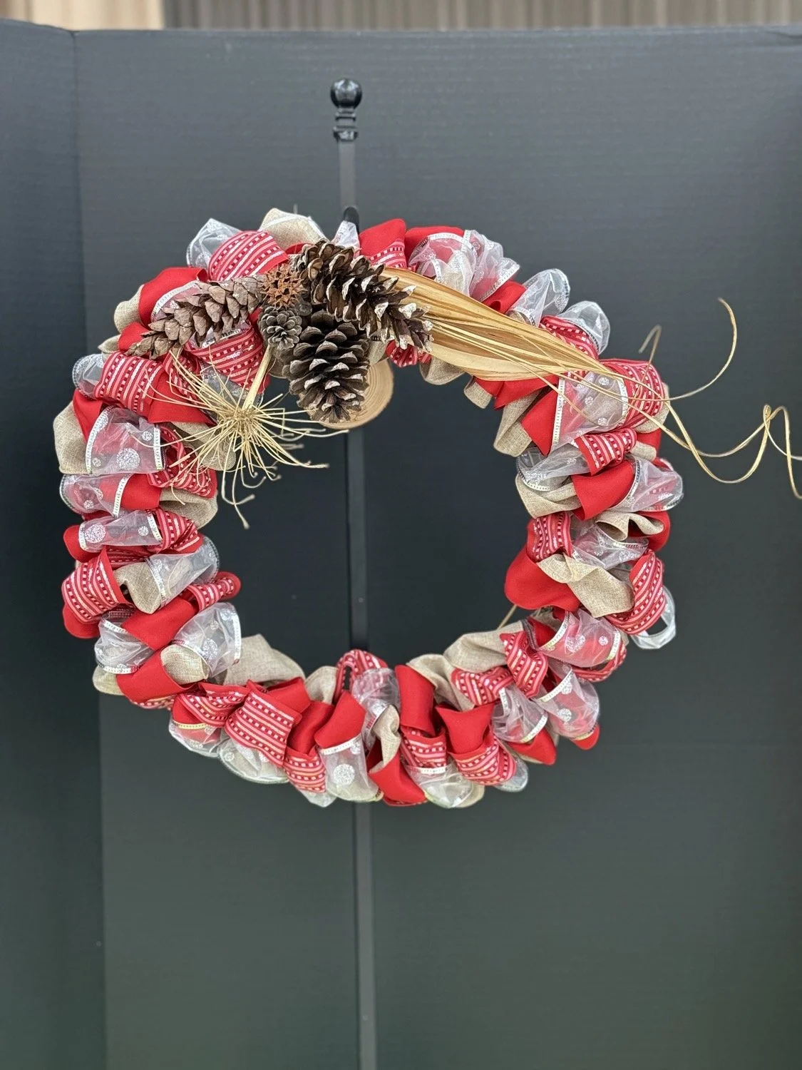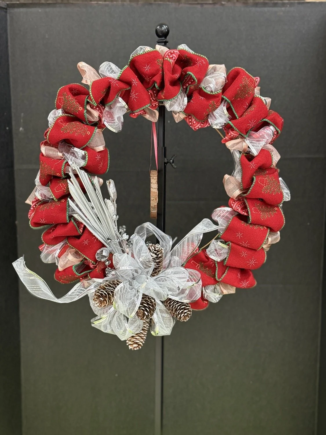 Wreaths were covered in advance with decorative ribbons by member Pam Dawson. Members added festive accessories and dried plant materials. Each wreath was attached with a wooden ornament bearing the club’s name and logo etched by Pam’s husband, Will Knudsen. A message of appreciation was delivered with each wreath using club stationary.